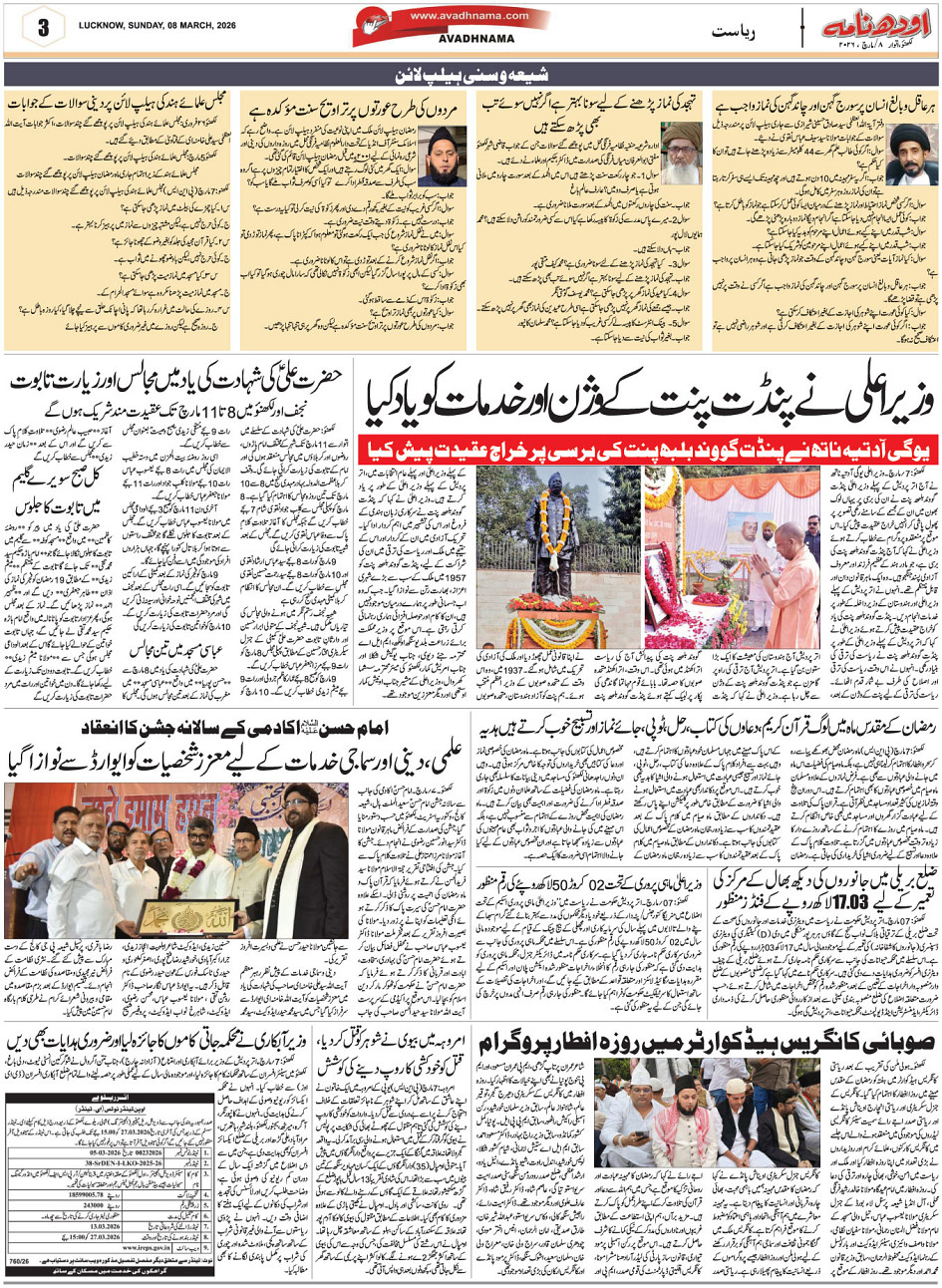 avadhnama urdu Page: 3 March 08, 2026 << First << 3 >> Last >> Page 1Page 2Page 3Page 4Page 5Page 6Page 7Page 8 × avadhnama urdu Full PDF << First << 3 >> Last >> 12345678